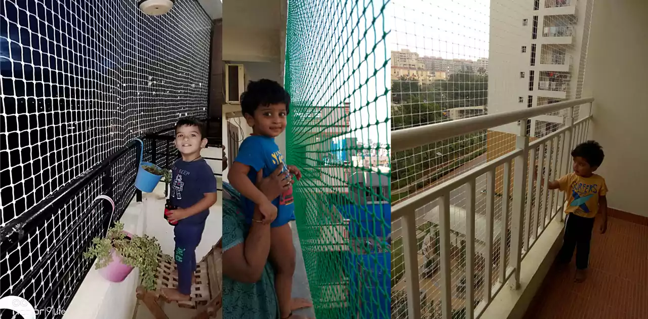 Balcony safety nets are installed to give safety and well being at home protecting children, adults, pets and objects that may height, terraces, balcony, window, doors, stairs, pools etc. Balcony nets are helps us to protect our properties as well as people.